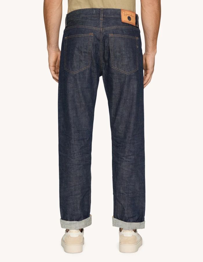 Motivo: Jeans StraightDondup è un marchio italiano di abbigliamento prêt-à-porter fondato nel 1999 a Fossombrone, nella provincia di Pesaro e Urbino. Il brand si distingue per il suo stile contemporaneo, che fonde forme ricercate e materiali di alta qualità, con un omaggio alla cultura del denim e un'attenzione ai dettagli tipica dell'haute couture .