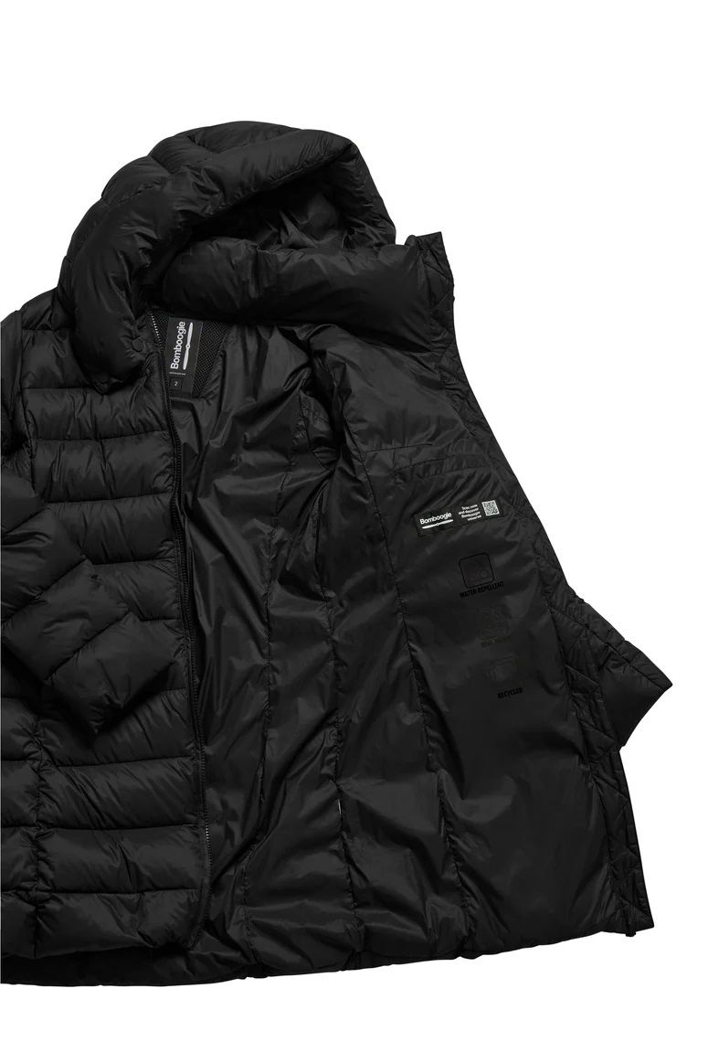 Il piumino Bomboogie con cappuccio e imbottitura termica, ideale per il freddo urbano;