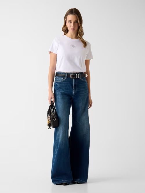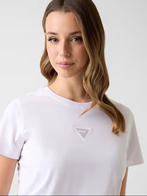 T-shirt con logo GUESS triangolo: un vero classico del brand, rivisitato stagione dopo stagione in nuove grafiche e colori.