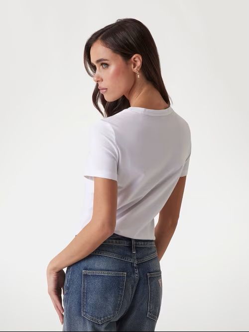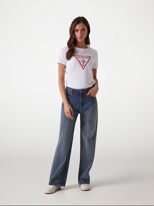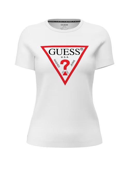 T-shirt con logo GUESS triangolo: un vero classico del brand, rivisitato stagione dopo stagione in nuove grafiche e colori.