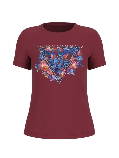 T-shirt con logo GUESS triangolo: un vero classico del brand, rivisitato stagione dopo stagione in nuove grafiche e colori.